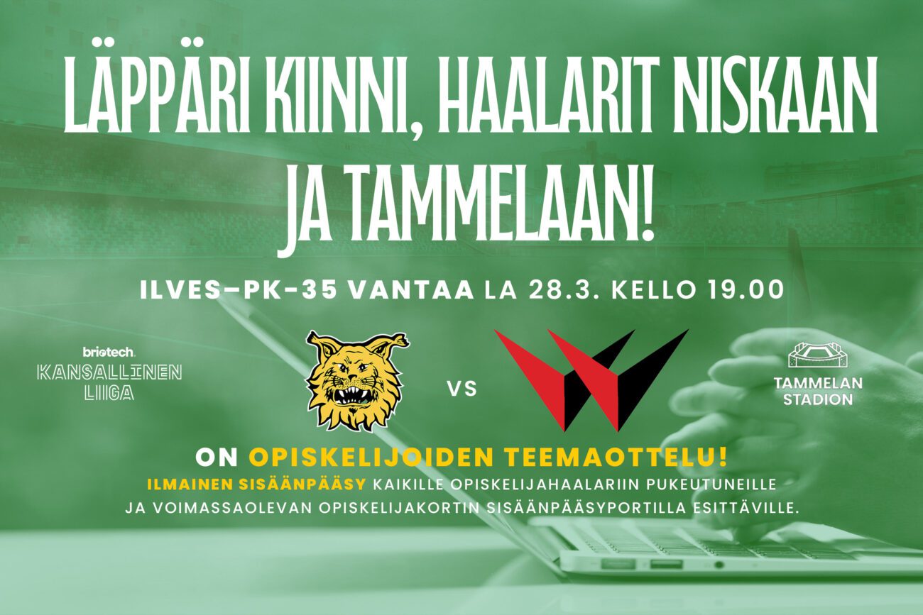 Kevät on opintojaan suorittaville usein raskasta ja työntäyteistä aikaa. Ilveksen naiset haluavat tarjota puurtamisen keskelle pienen palauttavan hetken. Kaikki opiskelijahaalareihin pukeutuneet ja sisäänpääsyportilla voimassa olevan opiskelijakortin esittävät pääsevät Ilveksen liigakauden avausotteluun PK-35 Vantaata vastaan ilmaiseksi sisään Tammelan stadionille. Avauskierroksen ottelu pelataan ensi viikon lauantaina 28.3. kello 19.00 alkaen.